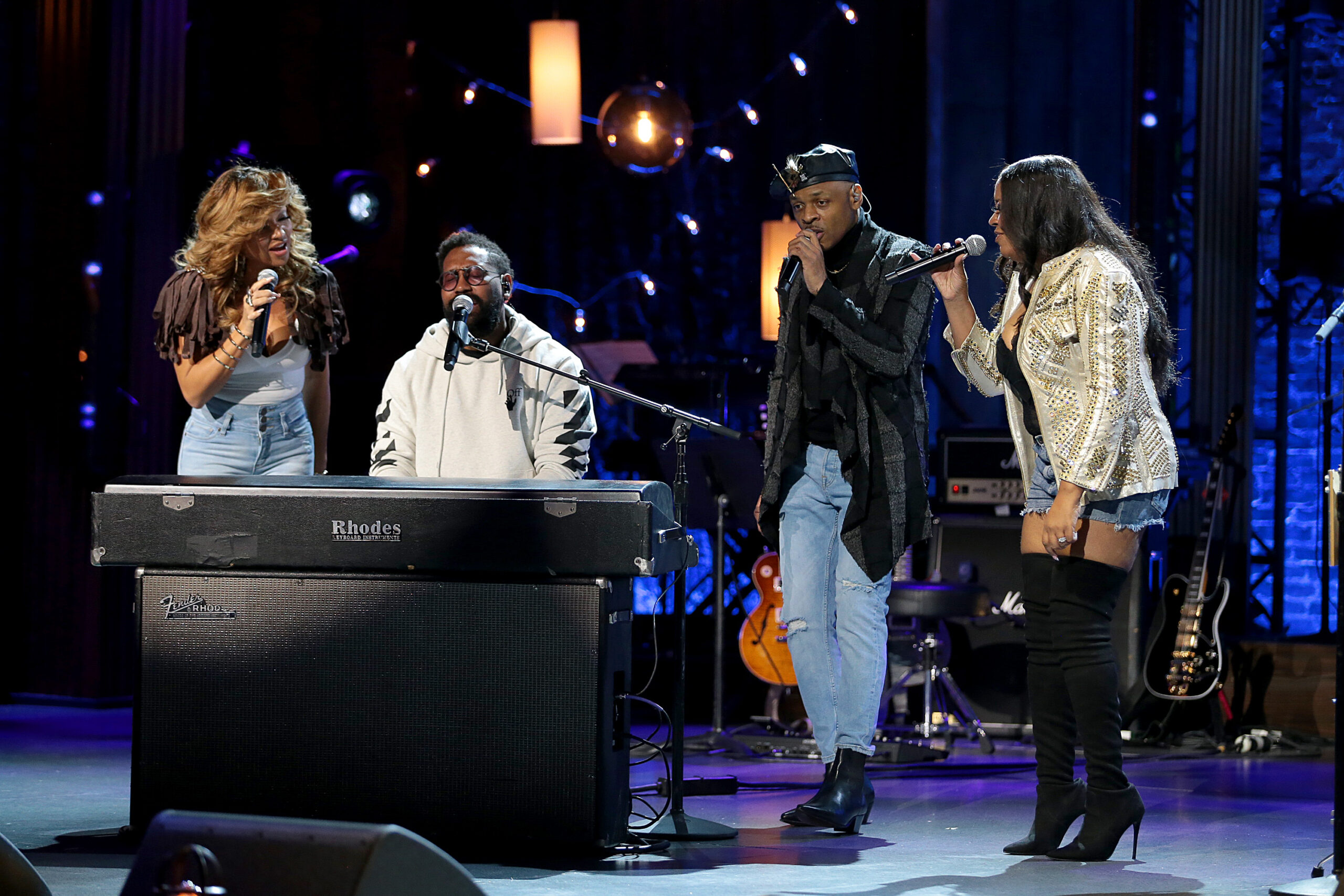 LOS ANGELES, CALIFORNIA – NOVEMBER 29: LOS ANGELES, CA – NOVEMBER 29: In this image released on November 29th, Chanté Moore, PJ Morton, Stokley Williams and Shanice perform during the 2020 Soul Train Awards presented by BET. (Photo by Leon Bennett/STA 2020/Getty Images for BET)