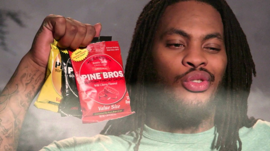 The clip begins by showing Waka, on his couch, surrounded by (ahem) smoke. “What does a Waka Flocka Flame do for minor sore throat relief? This here,” he says awkwardly, as gentle piano music plays in the background and he holds up a package of the throat drops.